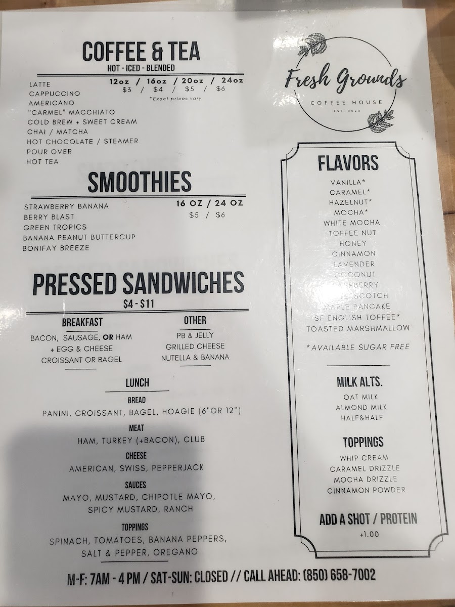 Welcome to Fresh Grounds Coffee House Inc., a charming coffee haven in Bonifay, FL. Nestled just off the U.S. 90, this inviting spot has quickly become a favorite among locals and travelers alike.